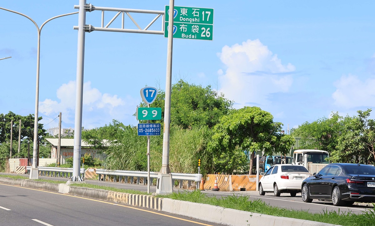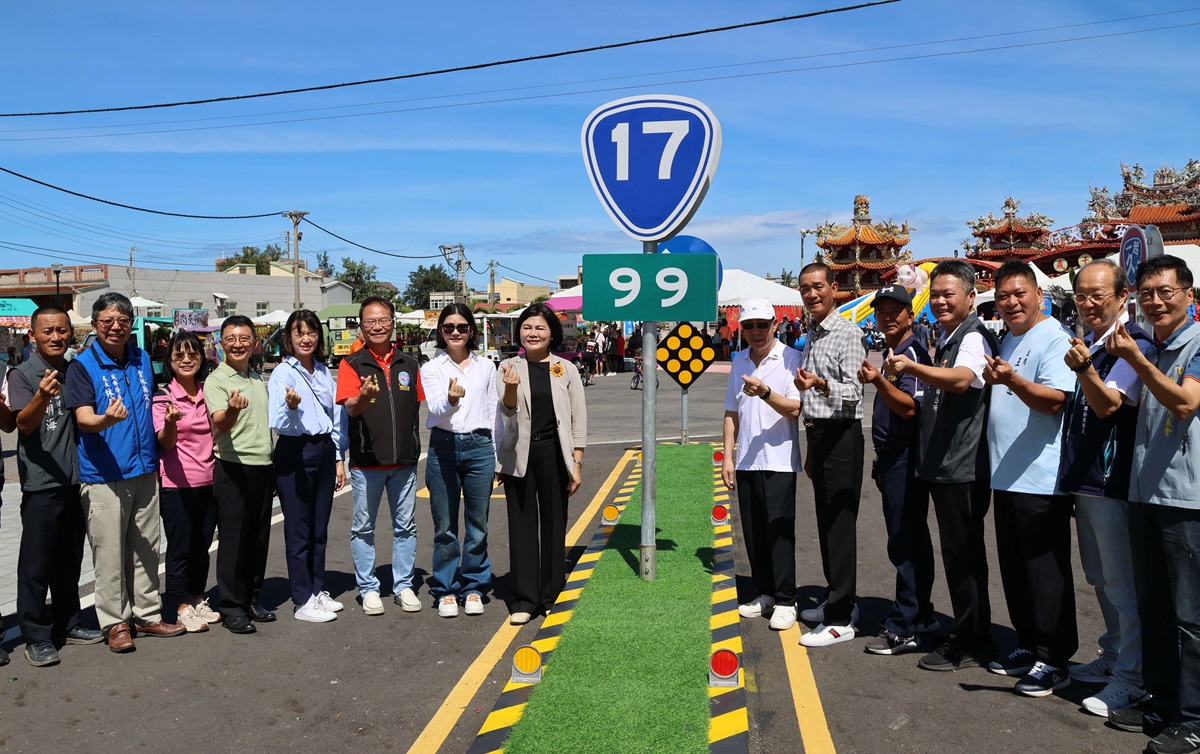 台17線公路99K里程處指標牌、分隔島、AC道路、標線及標誌等1:1複製場景 成為熱門的拍照打卡景點。