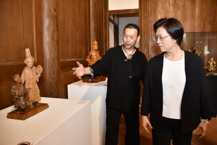 〔記者周為政鹿港報導〕「神韻巧藝,柯錦中創作展」,在 鹿港鶴棲別墅的「工藝展覽館」展出,展至8月11日,王縣長歡迎大家來欣賞粧佛技藝之美。