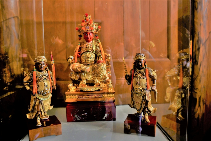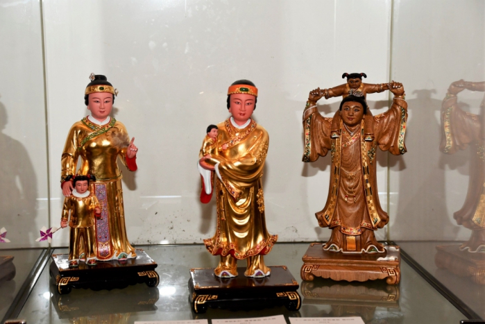 柯錦中感謝縣府團隊邀請展覽,展出作品有關聖帝君,神尊廣澤尊王、千里眼、順風耳、觀世音菩薩等及12婆姐系列。