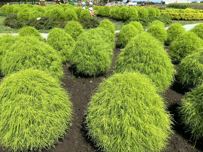 花市董事長賴啟文表示,暑期即將到來,中社花市特推出熱帶非洲產地的火球花,它色紅、型如球,用手一摸如絨毛,有很好的觸感,觀當期到七月十五日。另一種產地歐洲、亞洲的地膚草又叫波波草花,它綠茸茸的巨無霸,圓滾滾的萌萌樣,超級無敵可愛的,觸摸也是滑溜溜的,彷彿能療癒人們的心靈,整個人像是要融化了般,柔軟溫馨。亦很適合拍照打卡做背景,觀賞期到八月底。