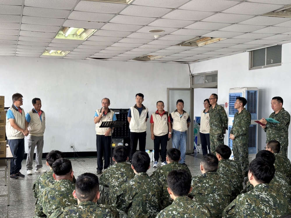 中部地區後備指揮部於24日起辦理五天的後備軍人教育召集,臺中市豐原區後備軍人輔導中心主任吳烱彬25日上午偕同臺中市後備指揮部組訓顧問黃建忠和輔導幹部張欽羽、張程翔、鄧勝元及徐倍基等人,前往台中市豐原區三豐營區關心慰勞參與人員,並致贈運動飲料十箱,鼓勵在場的官兵為保家衛國盡份心力。(圖文:記者林獻元)
