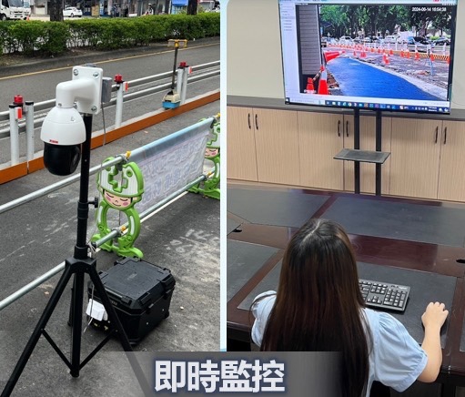 另工地現場也設置360度環景影像設備,提供職業安全衛生人員即時掌握施工現場危害,並且於行人臨時通行通道設置智慧語音警告系統,自動偵測行人並提醒已靠近施工區域。