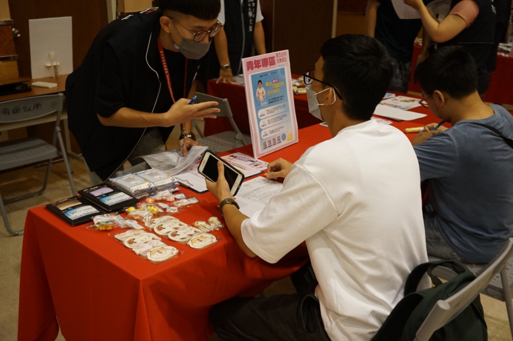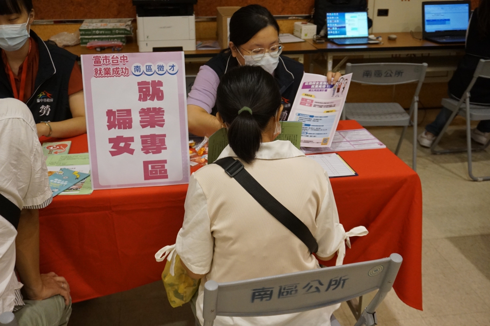 【記者林獻元台中報導】台中市政府勞工局攜手南區區公所,28日在區公所禮堂舉辦2024「富市台中 就業成功」南區徵才活動,15家廠商提供830個職缺,吸引上百位民眾參加面試,媒合率逾6成。其中有位社會新鮮人經就服員介紹「青年求職就業安心保險」後,立刻與同學相約「逗陣」辦理,待業期間將由市府負擔全額保費,求職更安心。