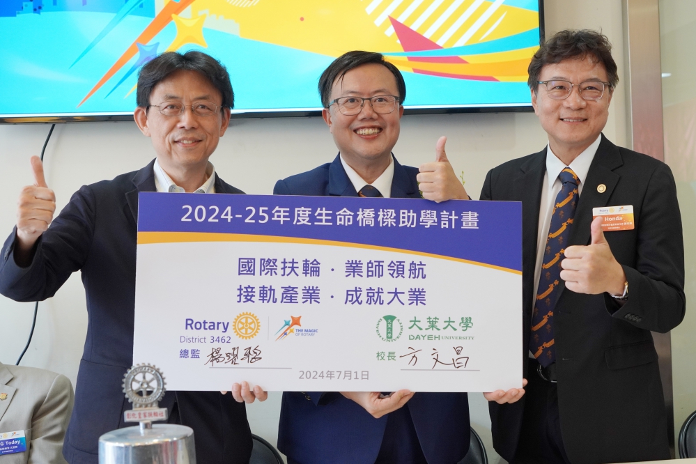 楊曜聰接任國際扶輪3462地區總監,其辦公室今日在彰化市揭牌,並宣布啟動大葉大學113學年度生命橋樑助學計畫,將結合學術與職場實踐,為學生提供全方位職涯支持。