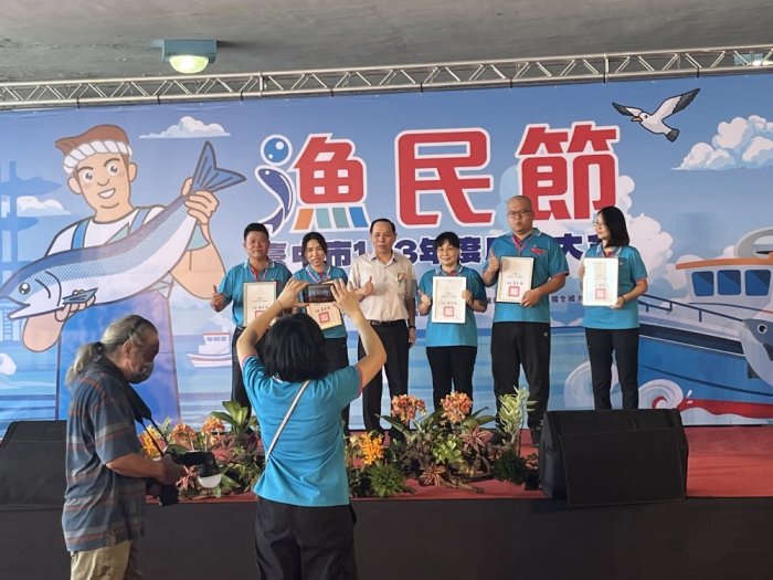 【記者林獻元台中報導】台中市漁民節慶祝大會1日在梧棲觀光漁港魚市場前舉行,市府副秘書長張大春代表市長盧秀燕頒獎表揚中市80位模範漁民及5位漁會幹部,向終年辛苦的漁民朋友表達誠摯敬意,感謝其不畏風吹日曬、對漁業的貢獻與付出。