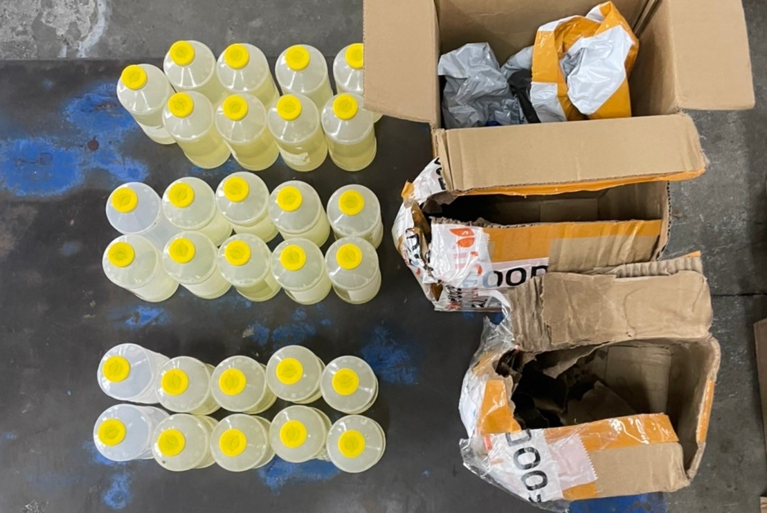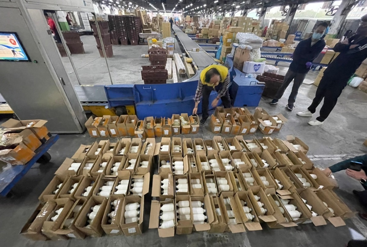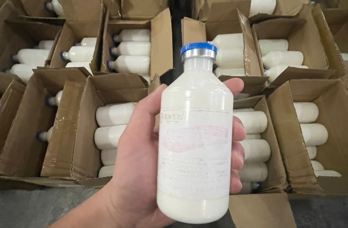 聯合查緝小組在嘉義某物流公司營業所內查獲1119瓶禽流感疫苗(每瓶250ml),共計343箱(每箱10瓶)。