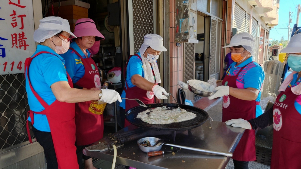 目前正是第一期稻作收割時刻,大安農會為讓社區長輩吃到在地最新鮮優質好米,總幹事蔡建宗於八日上午八時就率領一群有愛心的志工抵龜殼社區,起火煮剛收割的優質米、做海產粥、鼎邊趖等美味菜餚欲與長輩一起共餐,長輩們在開火時刻三倆在一起話家常。