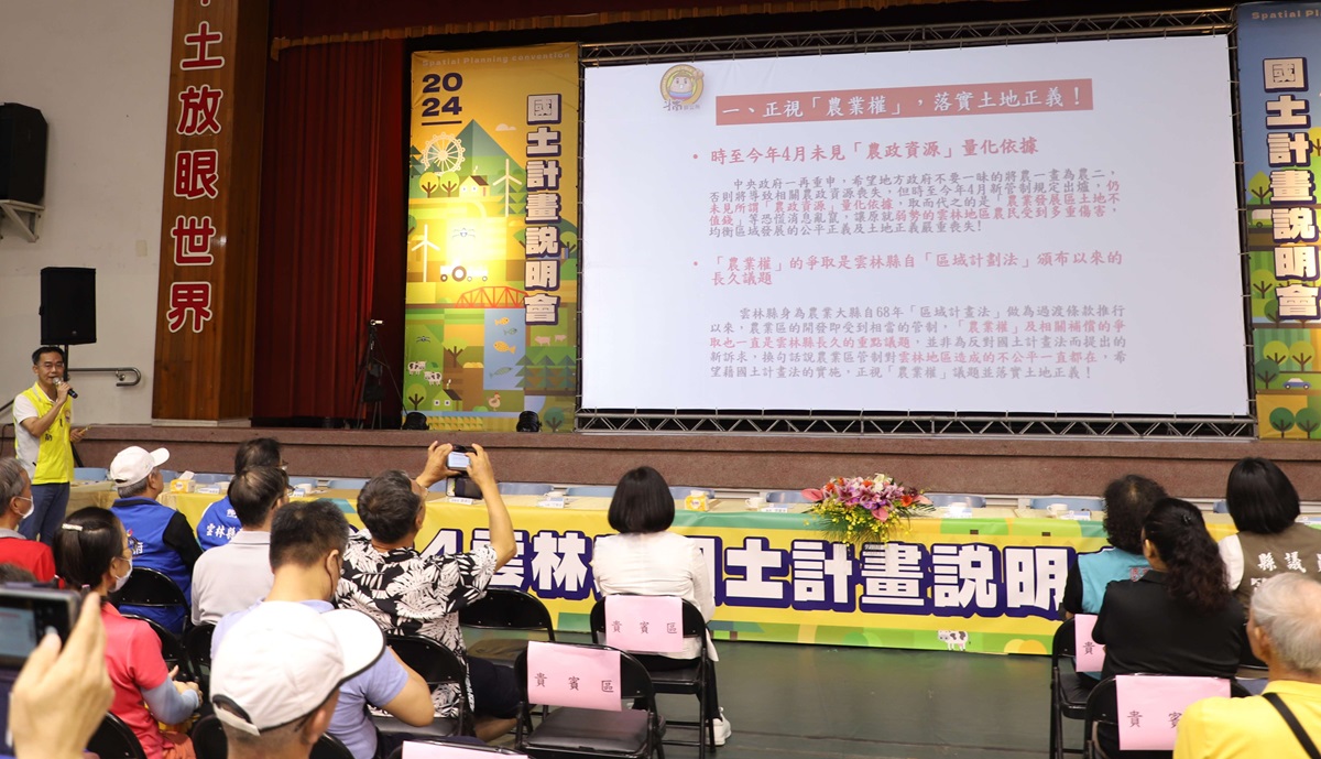 國土計畫說明會昨晚於斗南國小舉辦。(圖/記者蘇峰毅攝)張縣長指出,中央宣稱國土計畫規劃尊重地方意見,但實際上卻在審查時干預地方規劃,甚至在不同縣市間標準不一。例如,雲林縣原劃設的1500多公頃農二區域,經中央審議被要求修正為農一,顯示中央並未真實尊重地方意見。