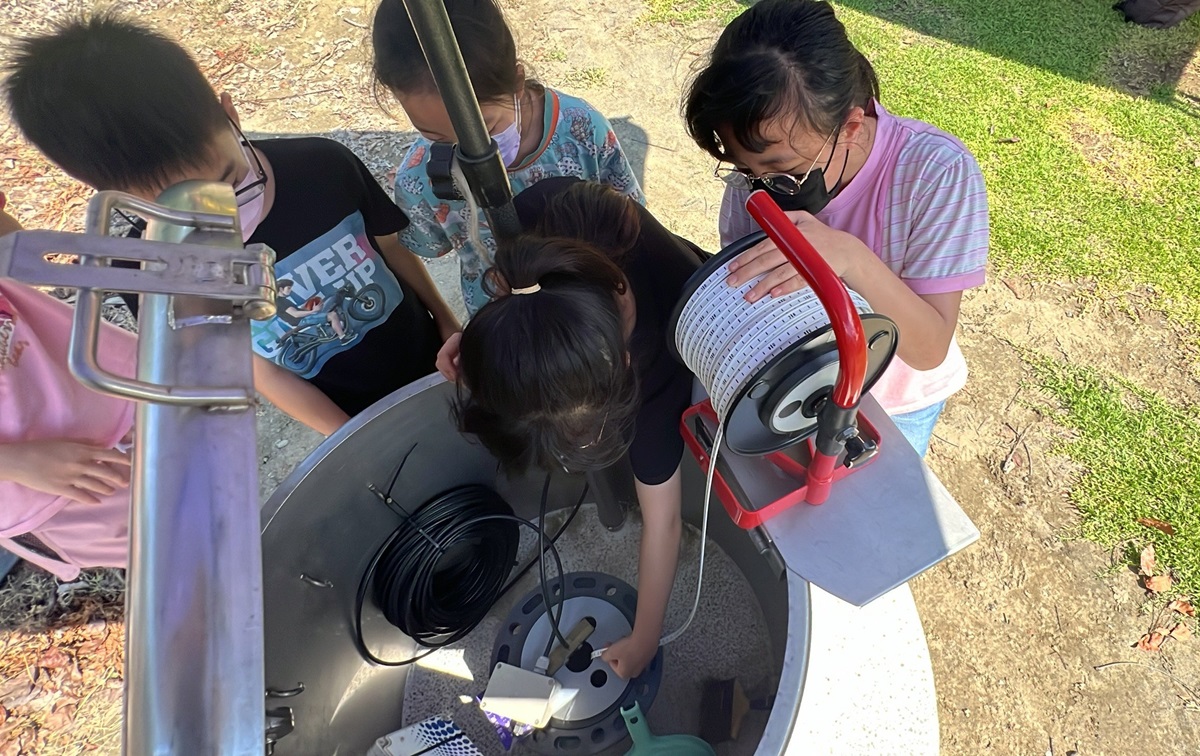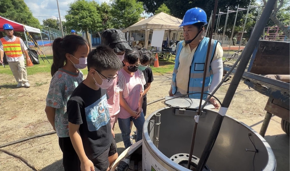 水利署工作團隊專業解說了地下水觀測井的清洗維護操作。