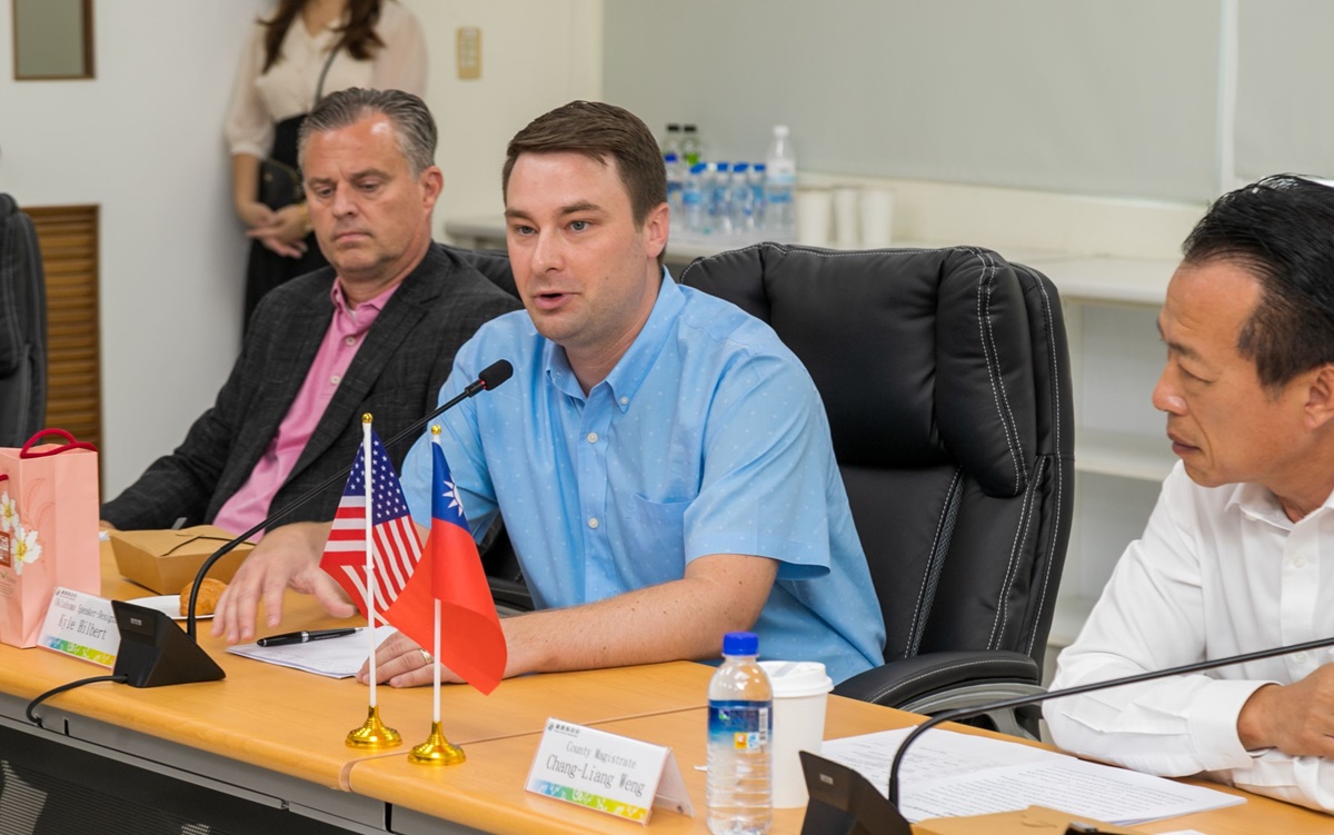 嘉義縣長翁章梁今日在亞創中心接待美國奧克拉荷馬州候任眾議長Kyle Hilbert及來自密西西比州、德州、路易斯安納州的參議員與眾議員組成的議會領袖團。(記者蘇榮泉攝)