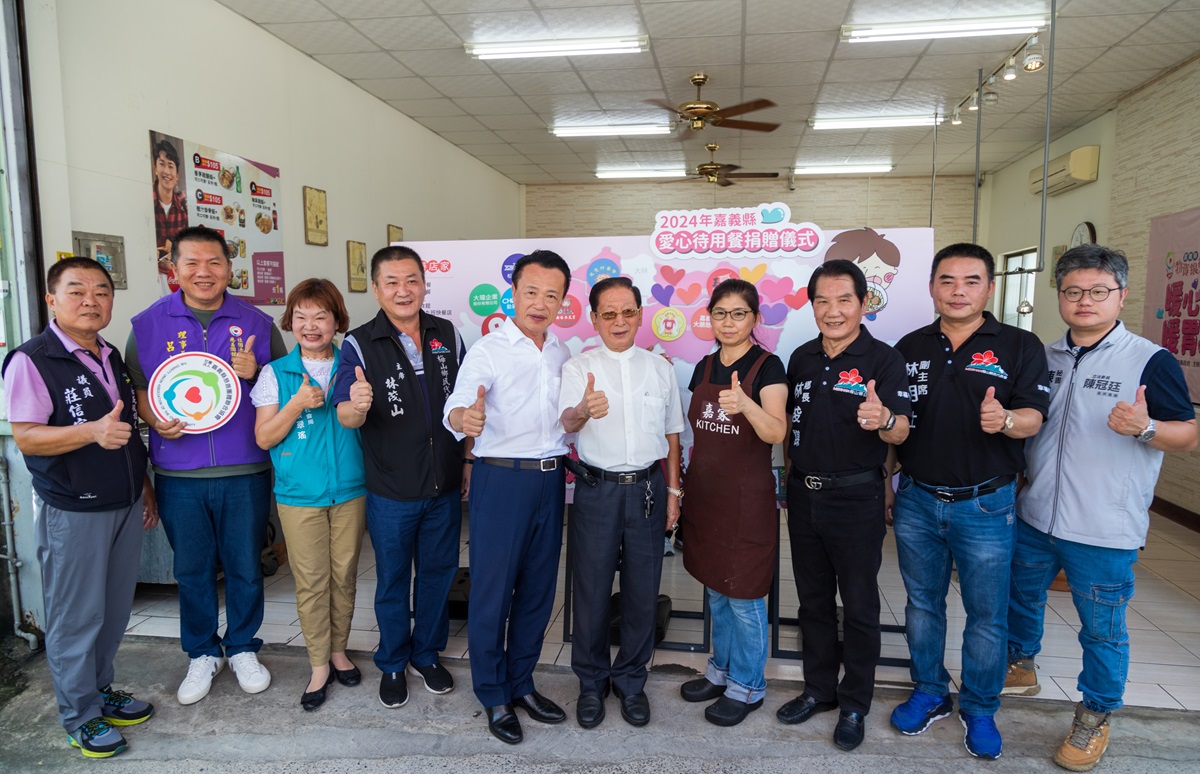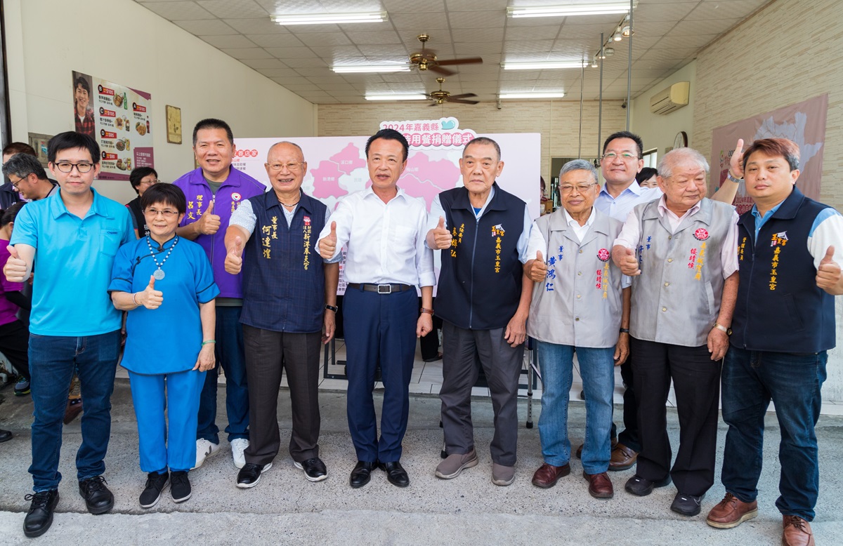 嘉義縣政府在梅山鄉友善店家嘉家簡速餐舉辦「暖心暖胃愛心待用餐捐贈儀式」。