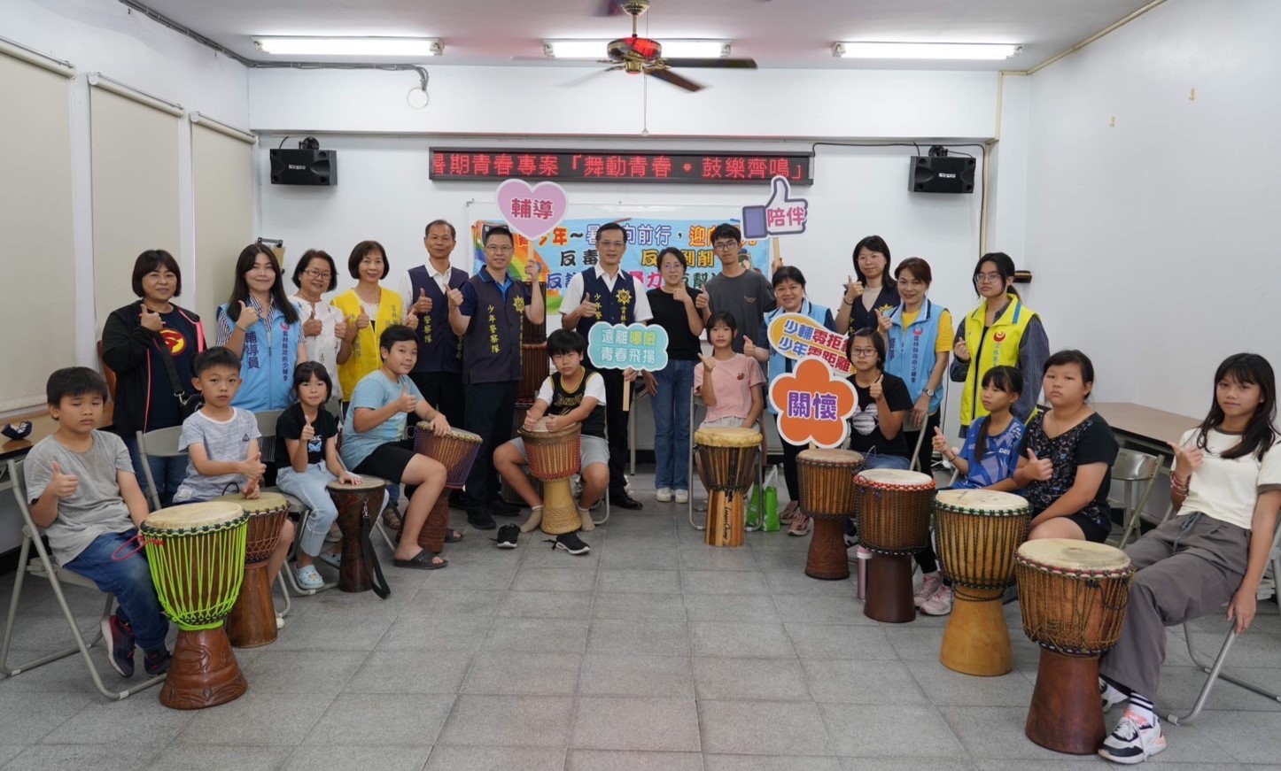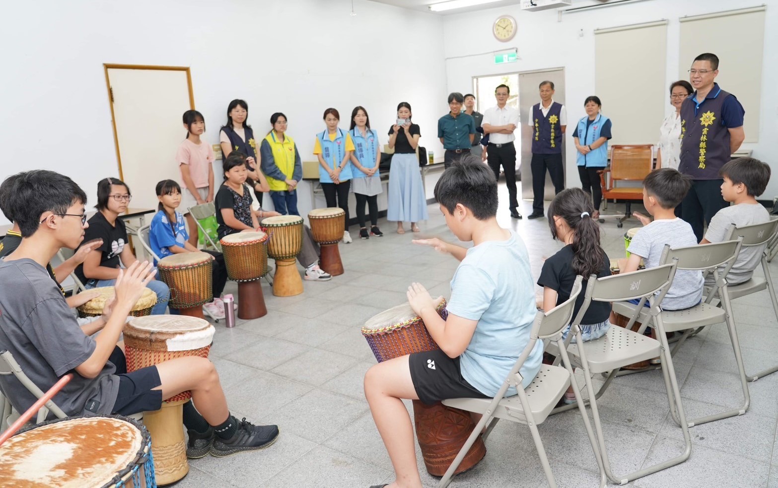 【記者蘇峰毅雲林報導】雲林縣警察局今年的「暑期保護青少年-青春專案」推出多項動靜態活動。本週,少年警察隊與雲林縣政府少年輔導會聯合舉辦別開生面的非洲鼓研習課程,吸引了許多對音樂充滿熱情的青少年參與,現場氣氛熱烈。