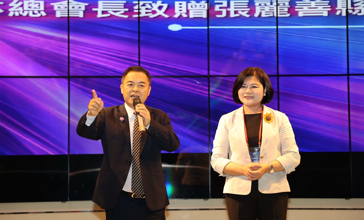 雲林縣長張麗善出席亞洲台灣商業聯合總會年會,感謝現任總會長許玉林邀集商會成員回到台灣,積極拜會各縣市長。