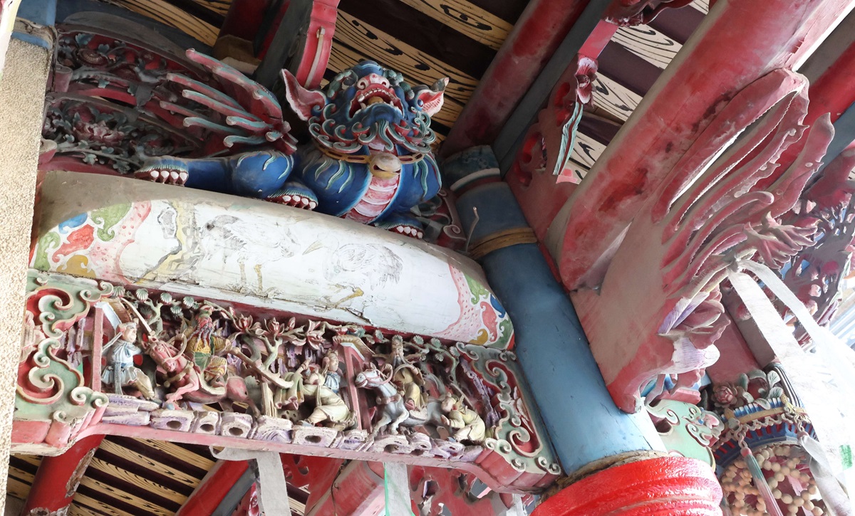 真一寺的泥塑浮雕傳統裝置藝術。(圖/記者蘇峰毅攝)
