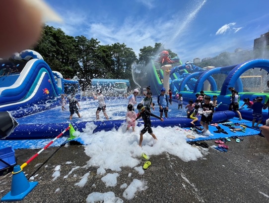 炎炎夏日,正值暑假期間,為增進親子關係及消暑好去處,沙鹿區某基金會於日前下午2時舉辦親子玩水活動,現場有水上育樂、泡沫大砲、泡泡DIY體驗及各式闖關活動,讓各位大朋友小朋友免費入場玩水、玩泡沫。