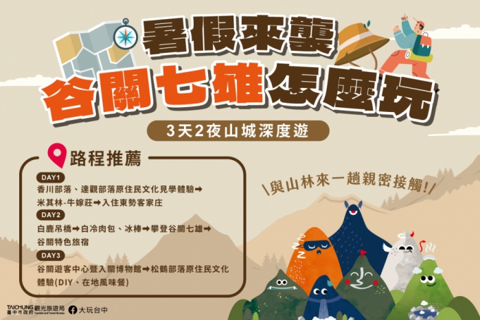 【記者林獻元台中報導】炎炎夏日中台灣避暑勝地,首選台中和平區!和平區素有「東方小瑞士」美稱,坐擁山岳、溫泉、高山蔬果及原住民文化體驗,為暑假期間安排親子出遊的好去處。台中市政府觀旅局因應暑期到來,推薦台中和平區4種玩法,分別為「2天1夜山區全攻略」、「2天1夜山海都擁有」、「3天2夜山城深度遊」、「3天2夜山海城玩透透」,歡迎大家親身體驗和平區山城魅力。