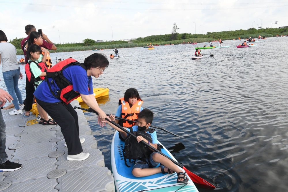 王縣長感謝直立板運動協會理事長向章緯,帶領團隊協助,讓102名家扶孩童和17名大專生小老師參加「海FUN一夏」,讓孩子體驗SUP(立槳)、獨木舟、水上自行車和龍舟SUP等水上活動,不但留下回憶,更藉寓教於樂,教導海洋和水域安全知識,讓家扶孩子做中學。