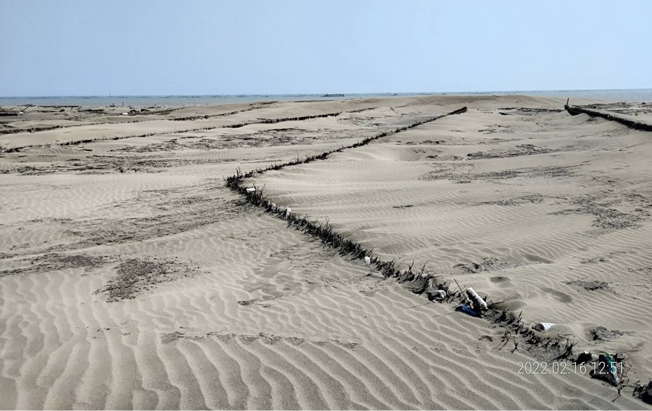 然而,颱風外圍環流的強風強浪將部分成果摧毀,令人惋惜。這些試驗提供了寶貴經驗,成為中後期植生定沙的參考。南投分署也與相關單位及在地團體分享這些經驗,通過跨機關合作、共享資源,凝聚共識,共同守護外傘頂洲。