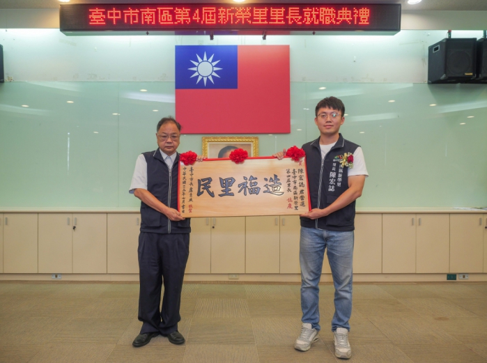 民政局長吳世瑋說明,南區新榮里里長補選於7月13日辦理,陳宏誌里長在選舉中獲得民眾高度支持,並於7月19日經台中市選舉委員會公告當選。