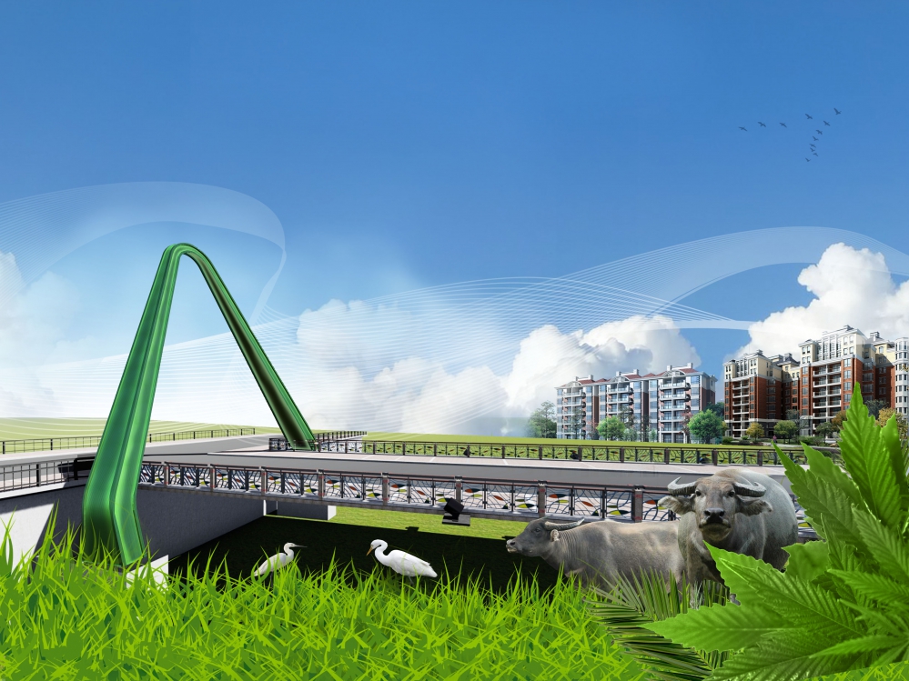 地政局指出,獲頒優質獎的「台中市烏日前竹地區區段徵收工程第二標及第四標合併工程-區內兩座主題景觀橋梁」是配合旱溪排水整治計畫進行區段徵收開發工程,因旱溪排水截彎取直後,於計畫範圍南側穿越而切割計畫用地,因此必須設置橋梁跨越旱溪排水。
