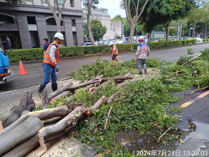 建設局長陳大田表示,因風勢強勁已造成台中市多起災情,北區忠太西路、東勢區中44線(石城街石山巷)等處中午左右發生樹木倒塌阻礙交通,建設局均於第一時間派遣廠商前往處理,於1至2小時內處理完成恢復車輛通行。