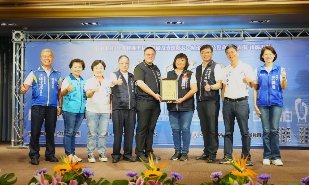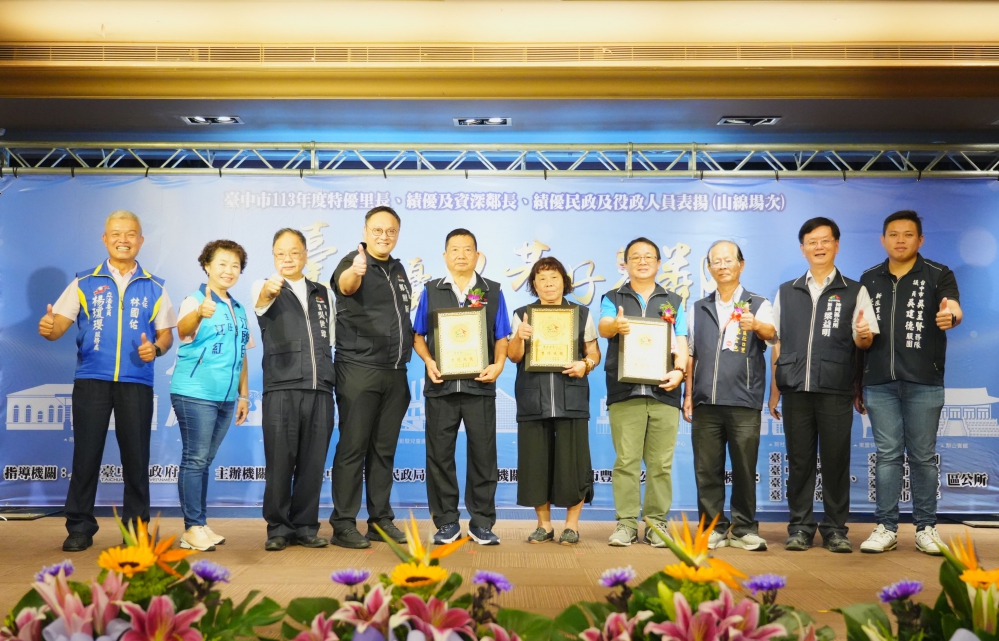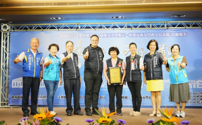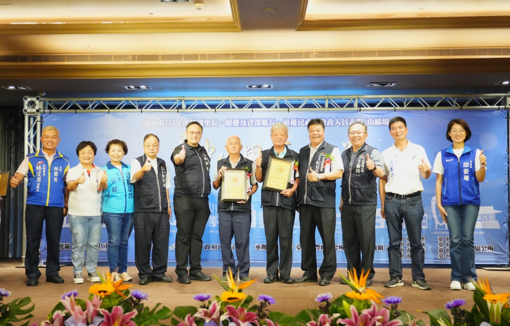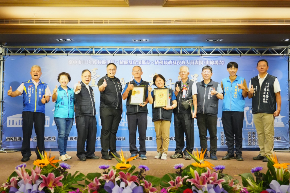 表揚活動27日在北屯區新天地崇德旗艦店舉行,來自豐原、潭子、大雅、神岡、后里、石岡、東勢、新社及和平等9區15名特優里長、200名績優鄰長及42名服務超過20年的資深鄰長、4名績優民政人員及3名績優役政人員,共264人獲頒殊榮。