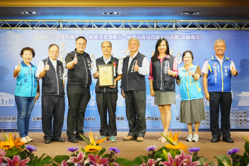 民政局長吳世瑋指出,此次獲獎人員在里鄰及民政、役政業務推動上,都有相當傑出的表現與貢獻。其中,大雅區三和里長廖顯彬連續服務年資逾26年,擔任多項要職為地方發聲,為里民與政府間最佳溝通橋梁。