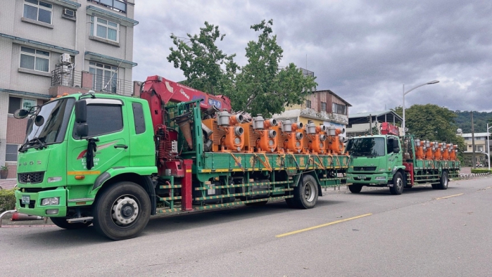 水利局說明,彰化縣尚有部分積淹水未完全消退,為加速退水,尚需增派抽水機於竹塘鄉、二林鎮及大村鄉等地區,向台中市調借10台6英吋抽水機,昨日早上已分裝2台卡車,載運至彰化市水資源回收中心,再分派至災區現場。