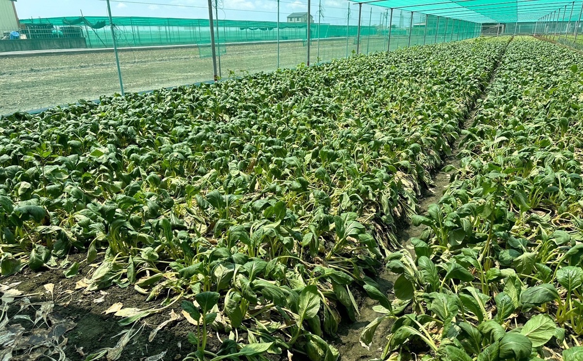 雲林二崙地區的短期葉菜類因豪雨及烈日曝曬而受損嚴重。(圖/記者蘇峰毅攝)