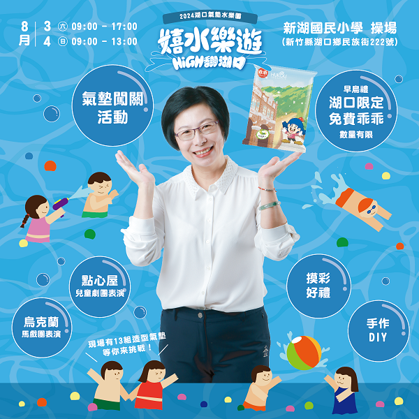 【記者 劉奕廷/台北 報導】清涼的2024湖口氣墊水樂園即將於將於8/3(六)、8/4(日)早上9:00在新湖國小操場盛大舉行,湖口鄉公所為了回饋熱心參與的民眾,今年特地為前一千名早到現場的遊客準備湖口限定版的免費乖乖一包!數量有限,送完為止。