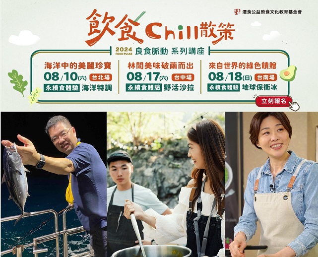 今年良食脈動巡迴講座,以「飲食Chill散策」為主題,將前進台北(8月10日)、台中(8月17日)、台南(8月18日)三地舉行。邀請各界「永續達人」分享飲食與旅遊的多元經驗,帶領民眾走入山林、海洋,感受異國食旅程,從中體會餐桌與生態間的關聯,透過日常飲食消費的選擇,可以為環境帶來正面影響。現場除精彩短講對談外,也會邀請知名綠色餐飲店家準備專屬飲品、冰品、蔬食等永續料理,讓參與活動的民眾不但學習知識也大飽口福,活動名額有限,可快透過ACCUPASS平台報名【免費參加】 https://reurl.cc/XRX47j 。