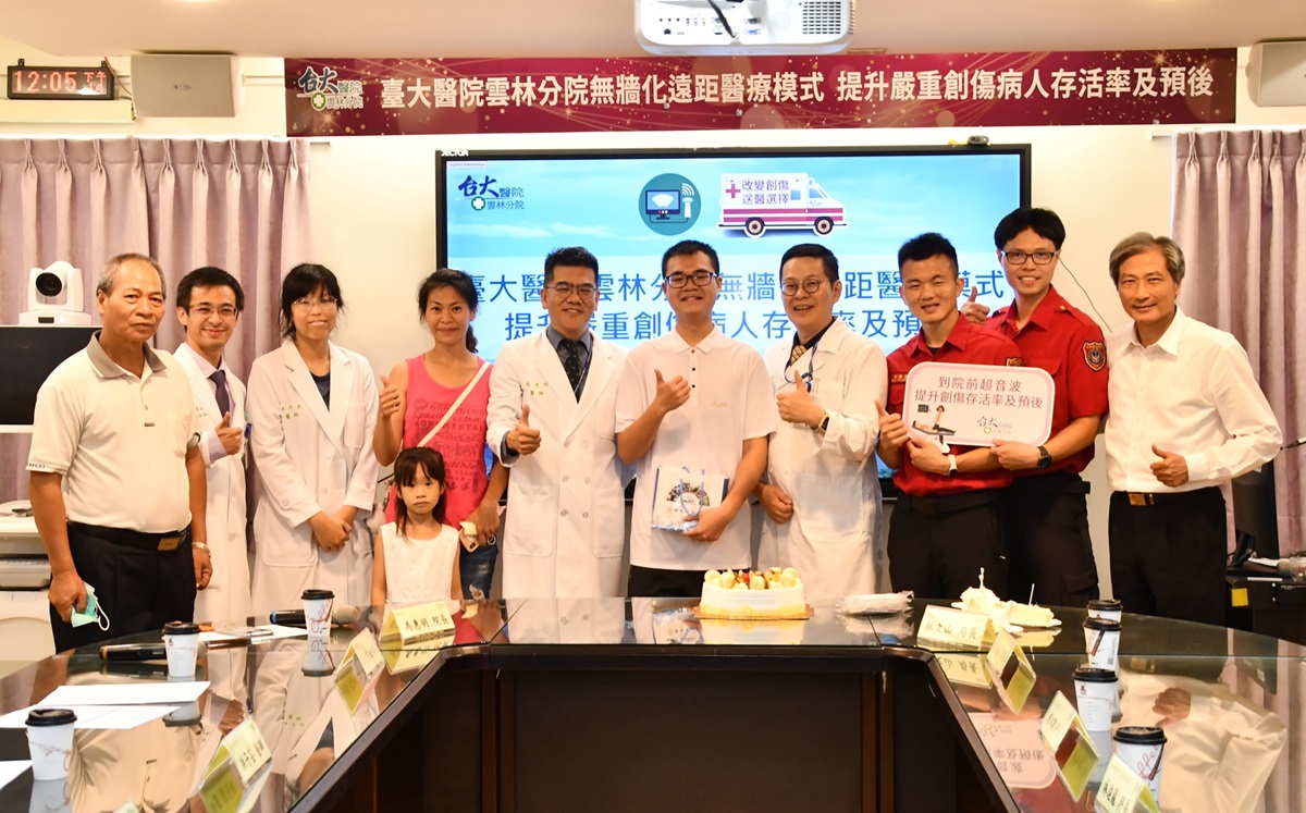 此前,有一名病人不慎摔入河渠,救護車到場後,高級救護技術員使用無線可攜式超音波,發現eFAST 陽性,後續隨即送到具重度級緊急醫療處理能力的臺大醫院雲林分院斗六院區急診,到院後檢查病人確實有氣胸、血胸、肝裂、腎裂,隨即啟動創傷小組,在黃金救援時間內立即處置後並轉加護病房做後續醫療照護,病人平安脫離險境順利出院。
