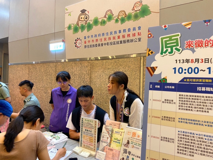 同時也提供族人與企業間互動的平台,讓更多企業在徵才現場更加了解族人的才華與潛力,增進族人的就業機會。原住民朋友如需獲得就業服務資訊,歡迎電洽台中市原住民族就業服務據點專線04-25255398。