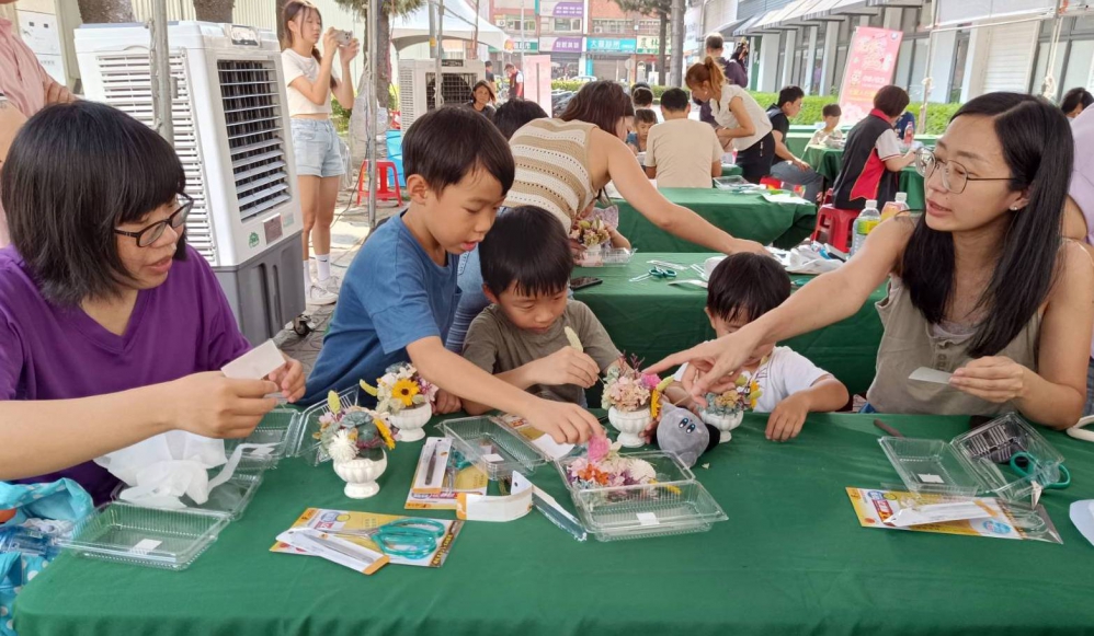 經發局科長洪青瑞表示,此次活動由商圈會員店家「寀琳美甲美顏spa館」店員進行簡單有趣的花束DIY教學,帶領家庭成員共同創作,有助於建立深厚的情感聯繫,同時鼓勵孩子對父母表達感謝之情。