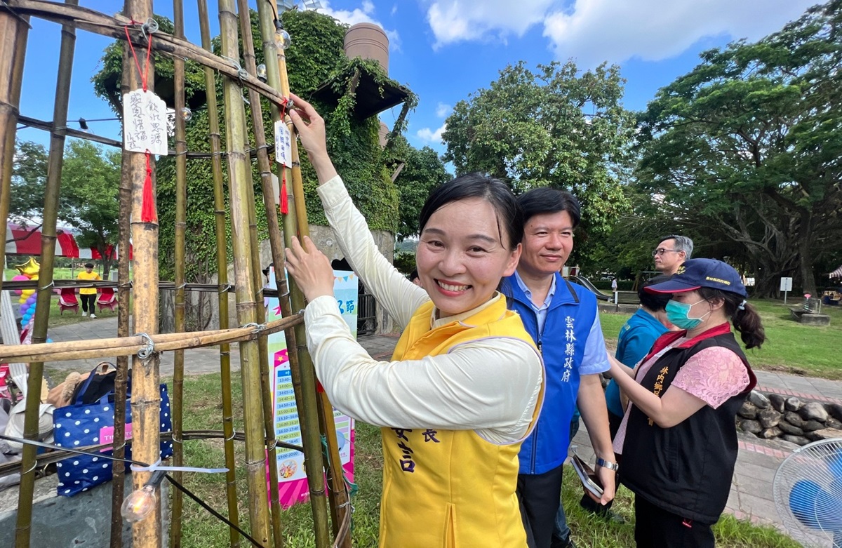 林內鄉長劉姿言親手懸掛在林內限定祈福「籠仔笱」上。