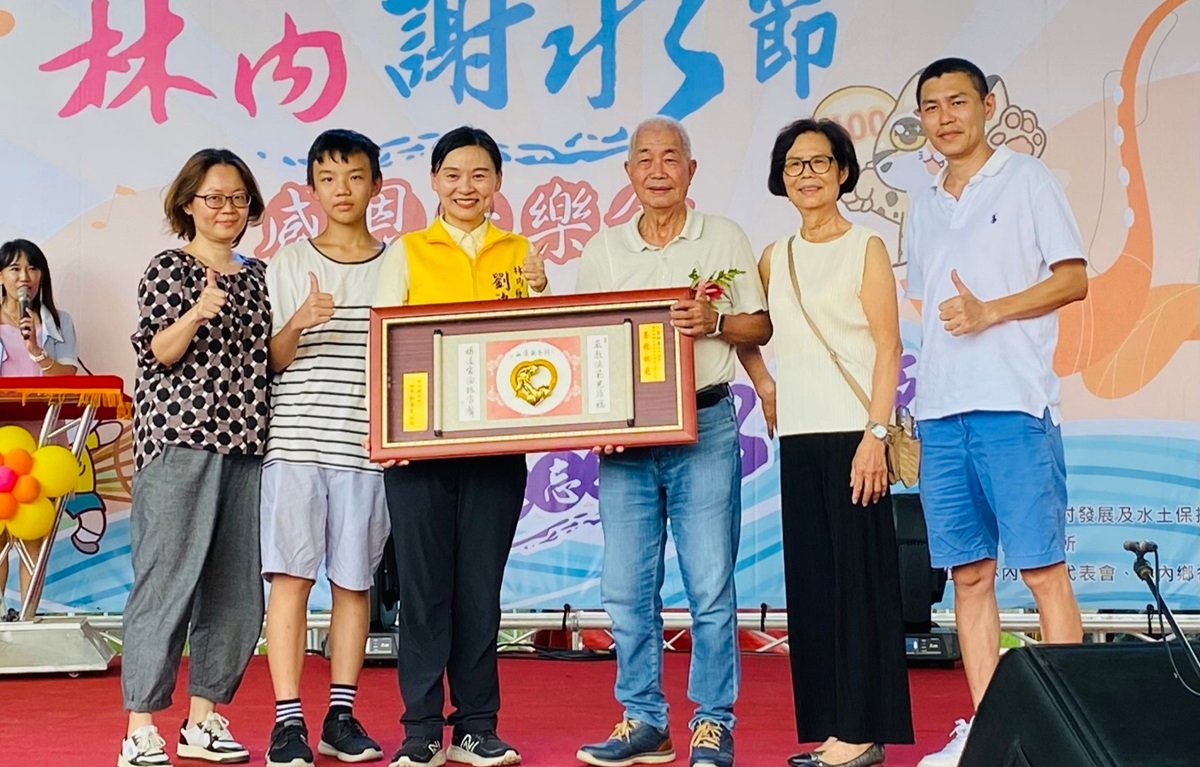 謝水節暨感恩音樂會活動上由林內鄉長劉姿言表揚模範父親。
