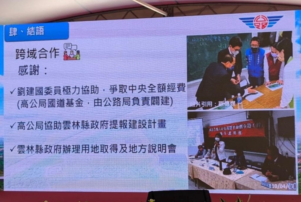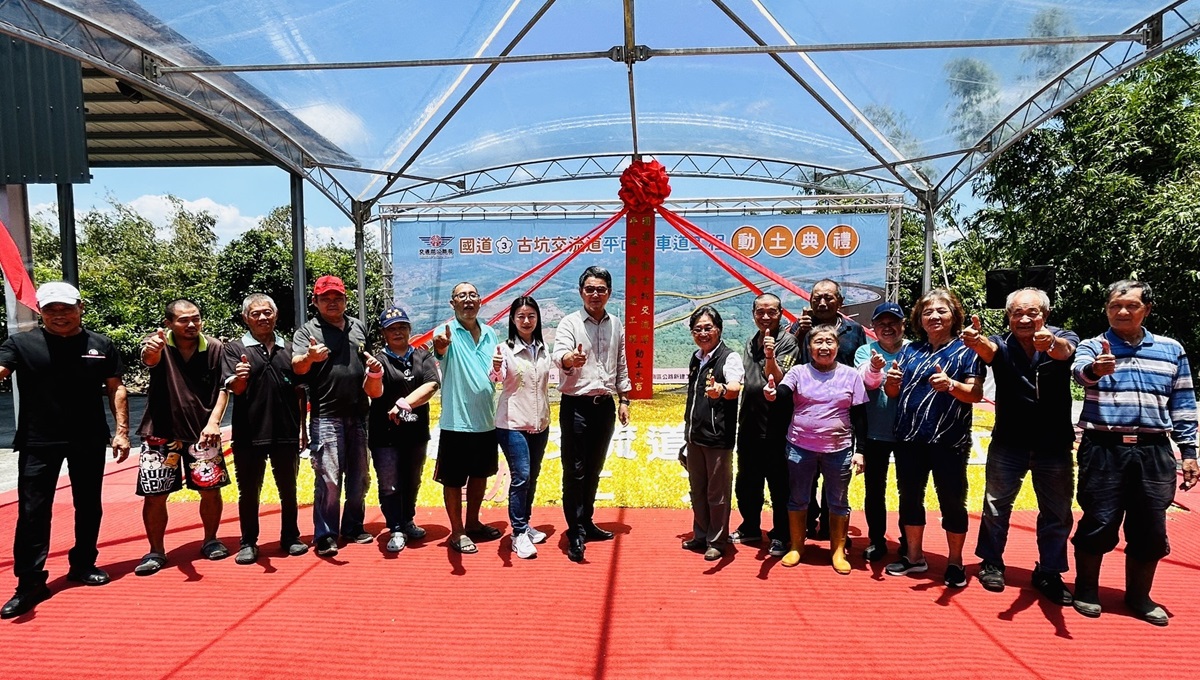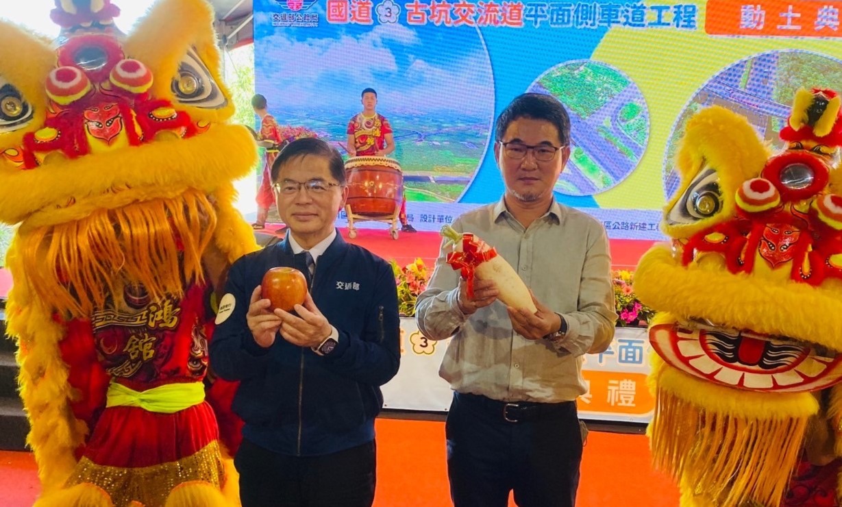 【記者蘇峰毅雲林報導】國道3號古坑交流道自2016年4月通車後,由於採用分離式匝道設計,往來南北匝道需經過7個村落,導致地方民眾抱怨不斷,形容為“半套交流道”。經過立委劉建國向中央爭取14.89億元,今(3)日在立委劉建國、交通部長李孟諺、古坑鄉長林慧如、雲林縣議員張庭綺、王秋足、賴明源、簡慈坊、公路局陳文瑞局長、南區公路新建工程分局林俊和分局長,以及在地村長、民代等,共同舉行「國道3號古坑交流道平面側車道工程」動土典禮。