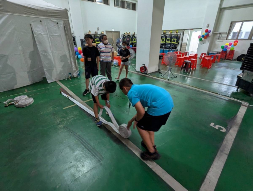 消防局說明,此次最大亮點為全程在消防分隊舉行,採20人小班制精緻教學,分成4組,由分隊同仁擔任小隊輔,手把手教授消防知識。