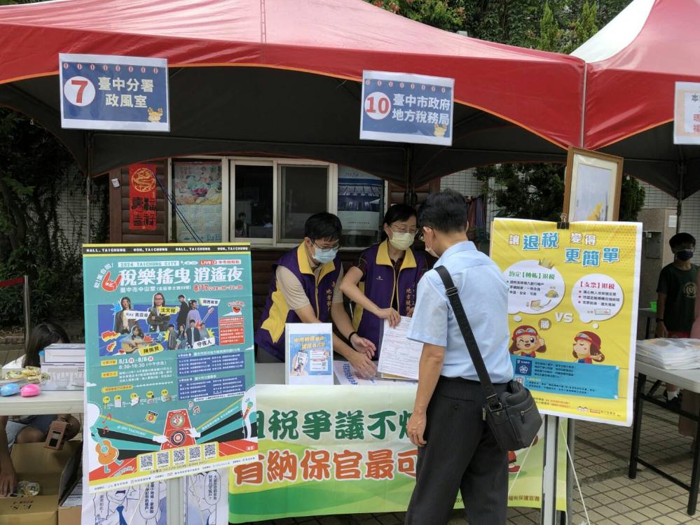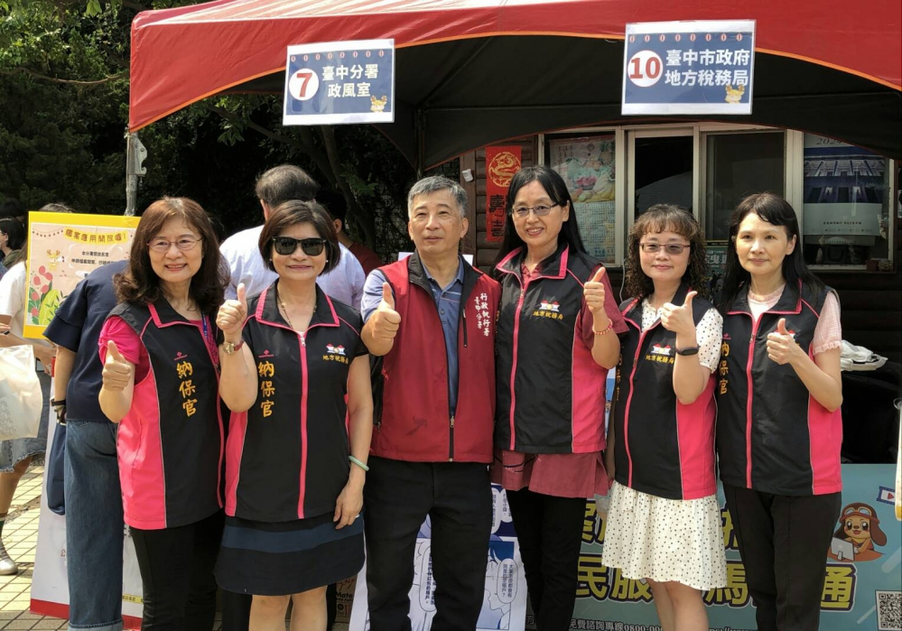 【記者林獻元台中報導】台中執行分署結合123聯合拍賣及善心好物義賣,6日舉辦「大墩公義市集」,現場拍賣欠稅百萬名車。地稅局長沈政安率領納保官及服務團隊熱情參與,在現場設置納稅者權利保護法租稅宣導攤位,提供專業稅務諮詢服務,協助民眾辦理轉帳納稅等相關業務。