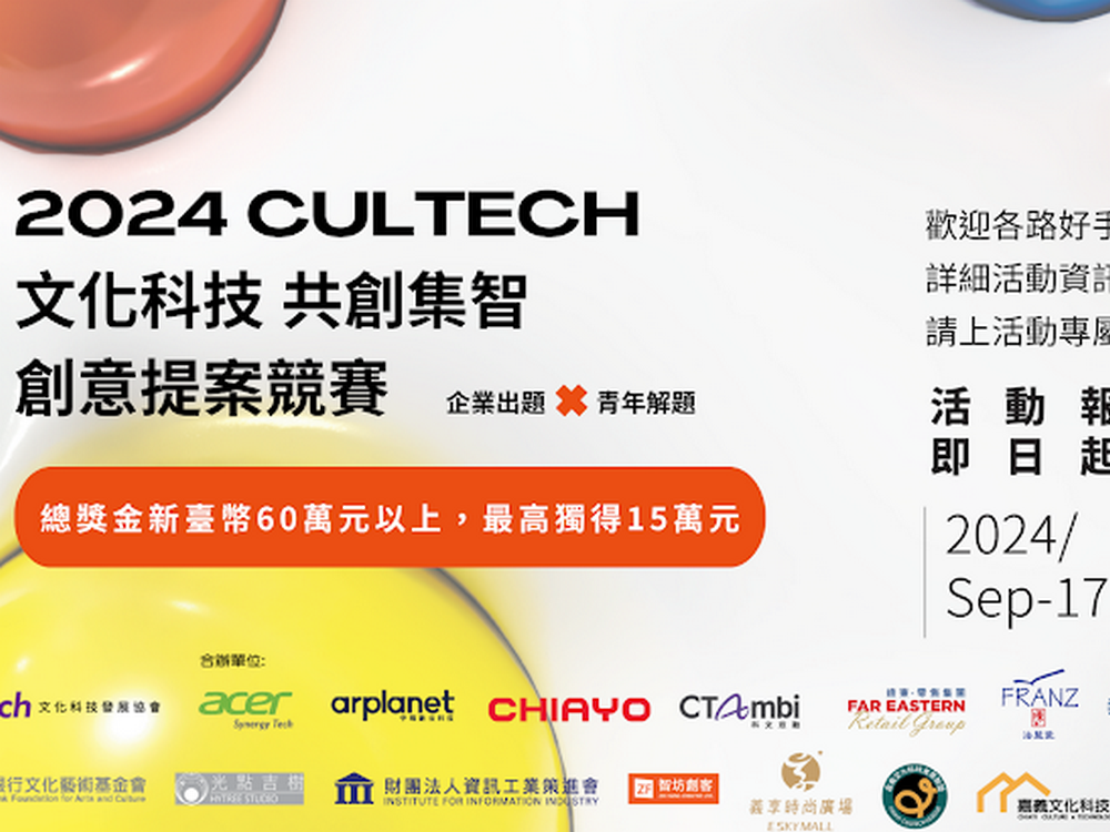 (記者任芳葵/嘉義報導)由嘉義縣文化觀光局與文化科技發展協會主辦「CulTech +1 文化科技共創集智創意提案競賽」,提案徵件進入最後倒數,文化場域組8月15日截止報名,企業應用組9月17日截止收件,總獎金180萬等你提案來挑戰。