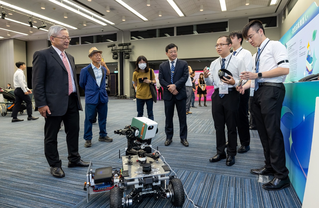 資工系特聘教授許永和與應外系助理教授黃珮雯領導的跨域團隊,首次參賽便以「AI智能互動桌球拍」奪得應用組金獎及新手獎。該作品利用數十位桌球選手的揮拍數據進行深度機器學習,讓桌球拍具備智能化功能,並結合虛擬實境(VR)技術,幫助初學者矯正揮拍姿勢,提高運動及競賽成效。
