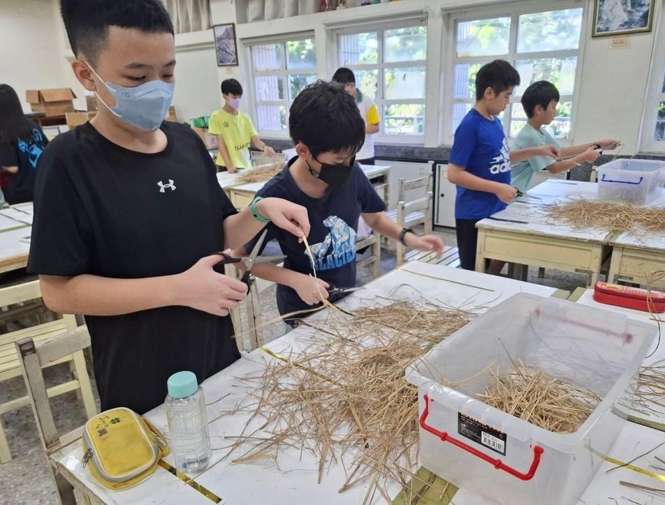國一生蒐集落葉並破碎、國二生以稻草稈製作400多條毛皮,