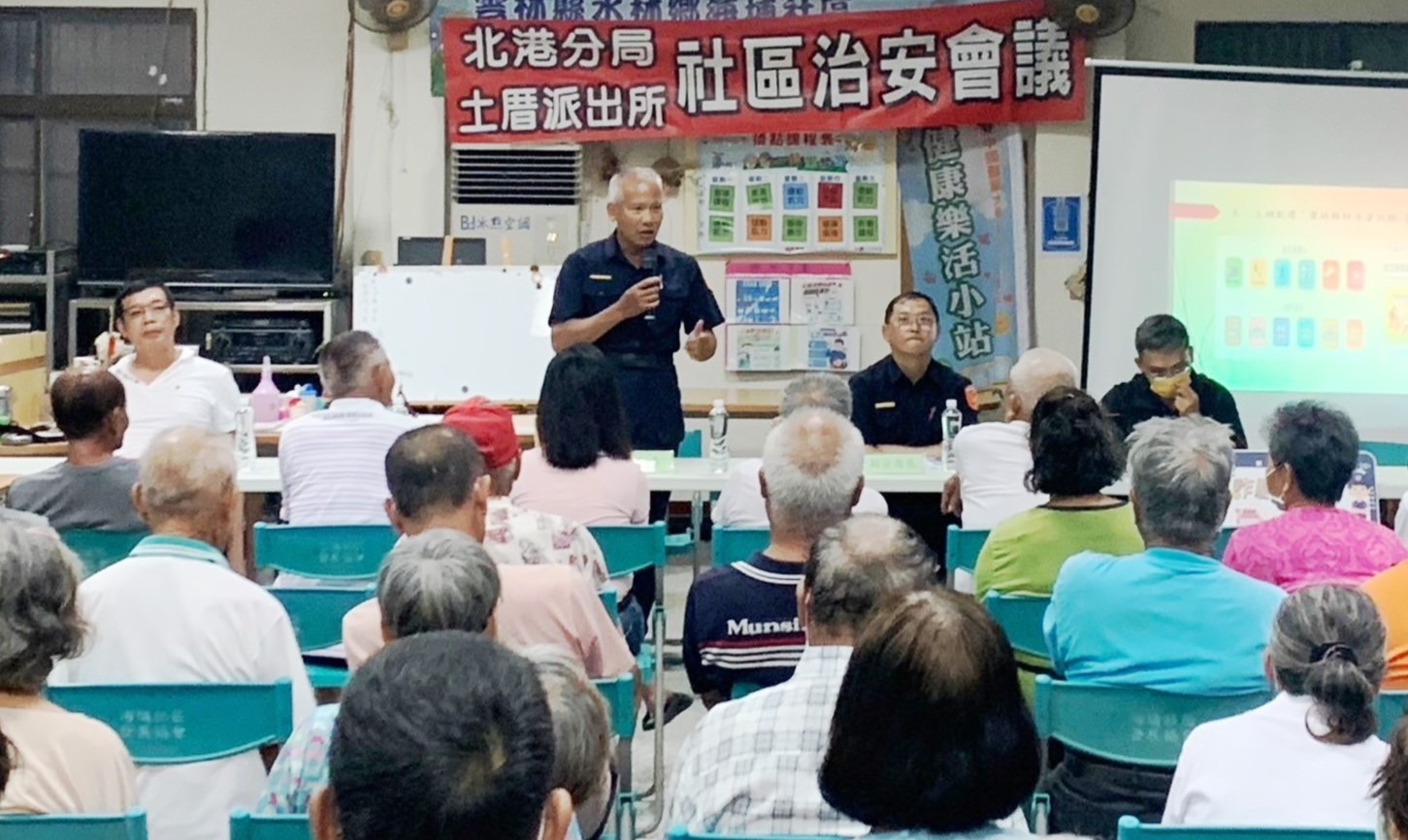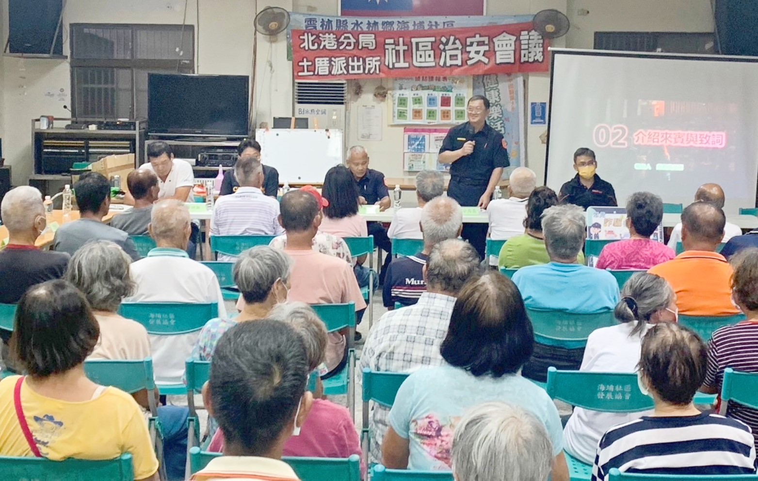【記者蘇峰毅雲林報導】雲林縣警察局北港分局土厝派出所於8月7日晚間在海埔活動中心舉辦治安座談會,由所長吳茂榮與村長莊國豐共同主持,吸引了當地村民熱烈參與。會議主要針對高齡駕駛的安全議題展開討論,旨在有效降低老年人的交通事故風險。