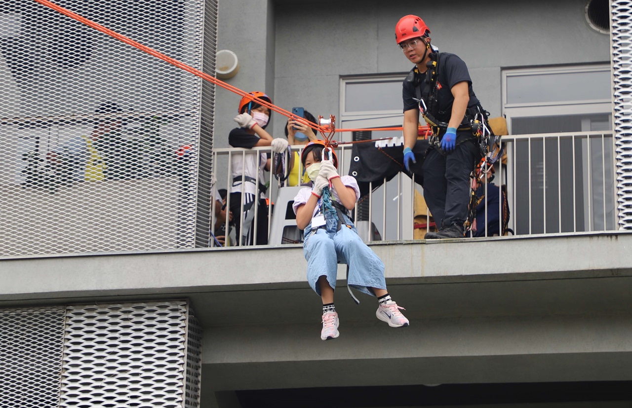 小朋友體驗繩索斜降。(圖/記者蘇榮泉攝)
