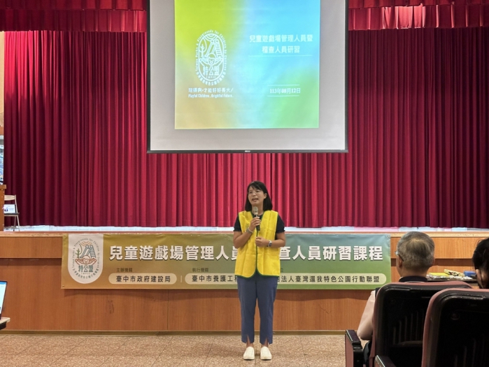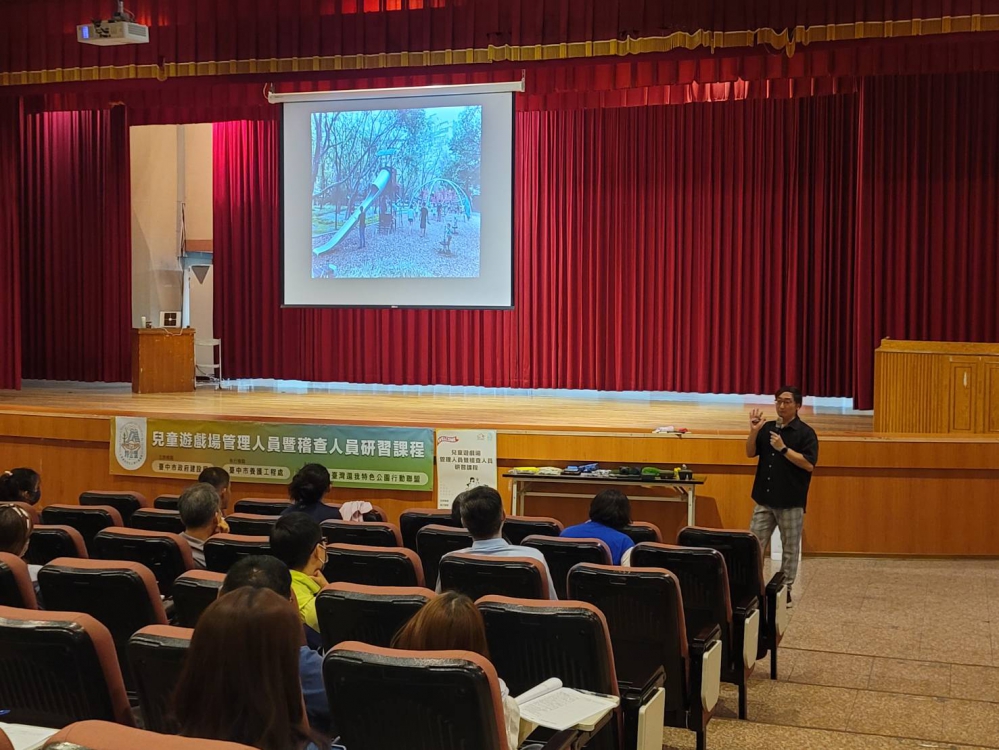 陳大田進一步指出,建設局積極辦理台中美樂地計畫,除要帶給市民更多元的舒適環境,更需營造出兒童遊戲場域的安全、友善;孩子是每位家長的寶貝,更是國家社會的希望和棟梁,市府有責任提供兒童更妥適的照顧。今日研習課程目的就是希望攜手市府團隊,共同守護提供市民更安全、高品質的公共休憩空間,讓小朋友玩得開心、家長放心。