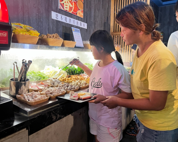 住埤頭的「阿媛」阿嬤,她來自印尼,第2個兒子在多年前遇上重大車禍,致雙腳癱瘓,阿媛阿嬤堅強扛起兩名孫子女照顧責任,為了省錢,阿嬤家裡餐桌上料理都很簡單,與孫子孫女一起吃火鍋根本是奢望,因此,阿媛阿嬤非常開心,帶著兩名就讀國小的孫子女來用餐,孫女小寧和孫子小翰,品嘗店內火鍋美食,阿媛阿嬤頻頻向店長致謝,阿嬤提醒孫子孫女,要珍惜每份餐點和社會愛心。