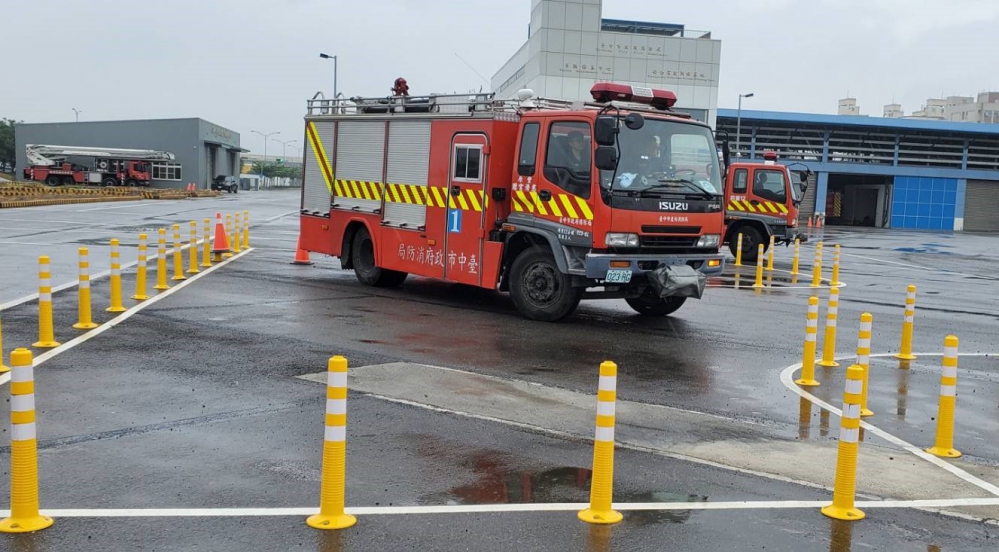 【記者林獻元台中報導】台灣道路多半較為狹窄、且交通環境複雜,消防車輛出勤為求迅速抵達災害現場,分秒必爭。為提升消防人員的出勤安全,台中市政府消防局設有消防車專用駕訓場,包括上坡起步、巷弄穿梭、S型彎道、盲彎車道、倒車入庫、路邊停車等設備,訓練時搭配多種道路情境模擬,可有效幫助學員熟悉各種駕駛環境,提升在不同情況下的駕駛技能及反應能力。