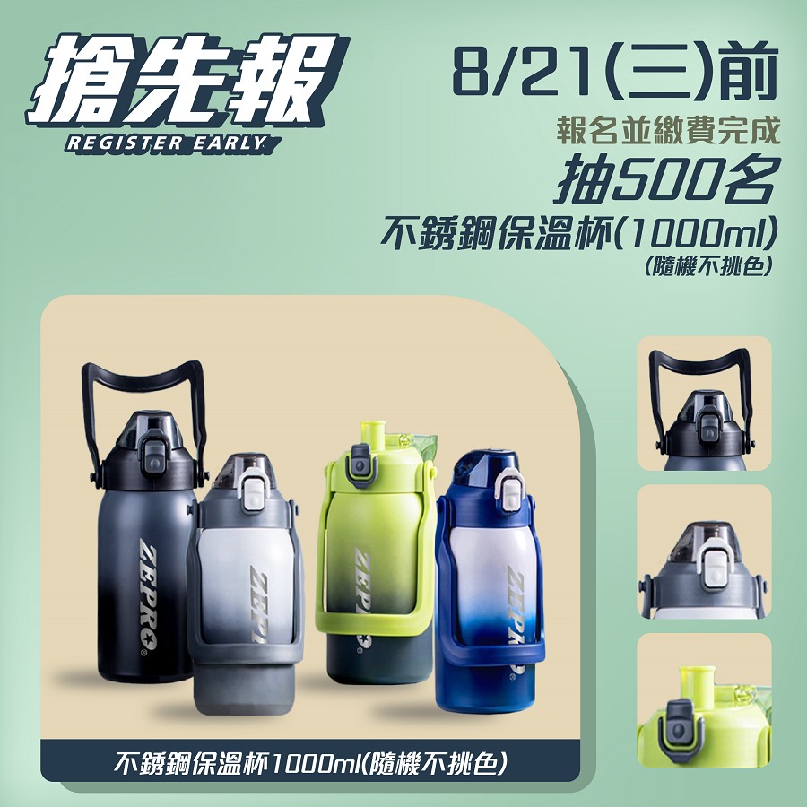 ▲8/21(三) 前報名繳費就抽500組不鏽鋼保溫杯,限量500組抽獎資格