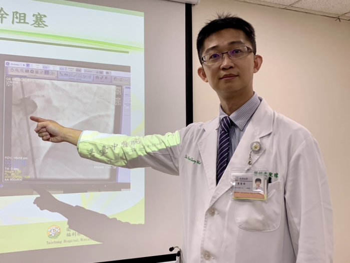 【記者林獻元台中報導】台南日前發生一起民眾疑癲癇發作,造成一死四傷重大車禍,衛生福利部臺中醫院心臟內科醫師黃聖瑋也曾碰到一名車禍昏迷送醫個案,急診檢查發現除了頭部撕裂傷,心電圖也出現異常,進一步心導管檢查發現左冠狀動脈主幹完全阻塞,確定心肌梗塞,經緊急裝置心臟支架,打通血流,幸運搶回一命。