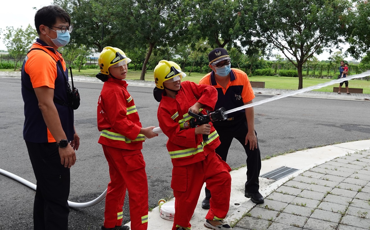雲林縣消防局於17日在豐泰文教基金會綠園區舉辦了「2024雲林縣小小消防員暑期營」。(圖/雲林縣消防局提供)